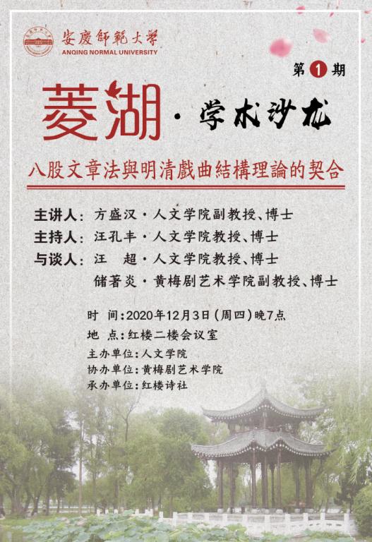 讲座预告:【菱湖学术沙龙①】八股文章法与明清戏曲结构理论的契合