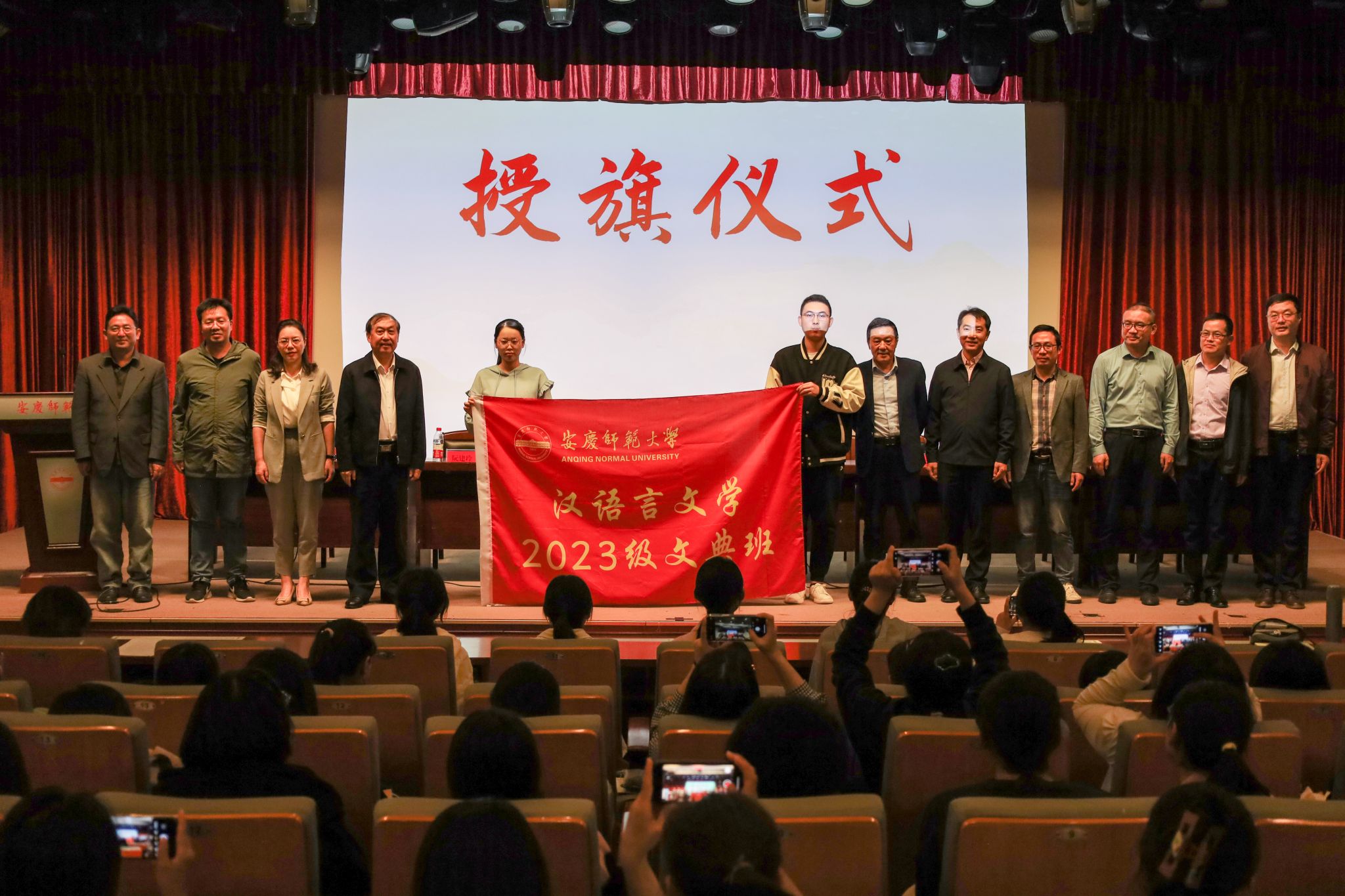 刘友忠为文典班授旗。刘友忠表示,汉语言文学专业是学校办学历史最悠久、实力最雄厚的专业之一,在首批卓越与拔尖人才培养改革计划中勇于尝试,大胆创新,为汉语言文学人才培养和国家级一流本科专业建设开创了新模式。他要求文典班新同学在立德明志中追求卓越,将职责使命融入到中华民族复兴大业中;在勇于创新中追求卓越,勇于突破惯性思维,与时俱进;在知行合一中追求卓越,精进学业。