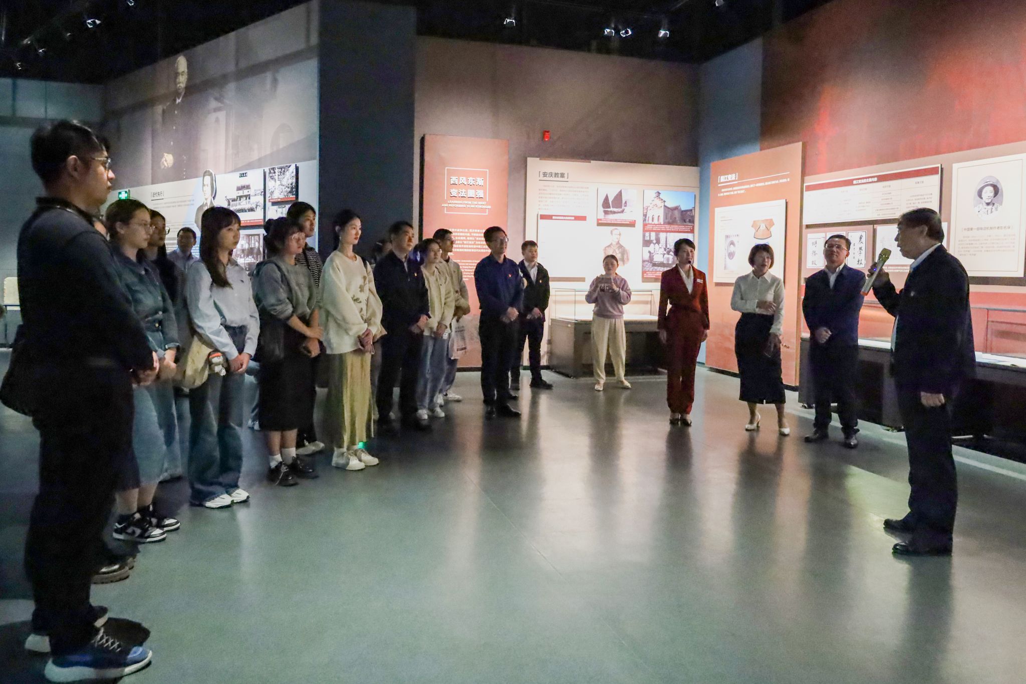 “安庆是一座国家级历史文化名城,自古以来都是南北交流的重要通道。”在讲解员的带领下,全体成员参观了安庆博物馆。该馆内设8个主题展厅和2个临展厅,其以安庆古代文明陈列、安庆近代文明陈列、黄梅戏艺术陈列、安庆城市记忆为主线,运用图文、影像等展示手法,并结合人物塑像、文物陈列、场景模型等集中展示了安庆波澜壮阔的发展历程,增强了全体成员的归属感与历史责任感。