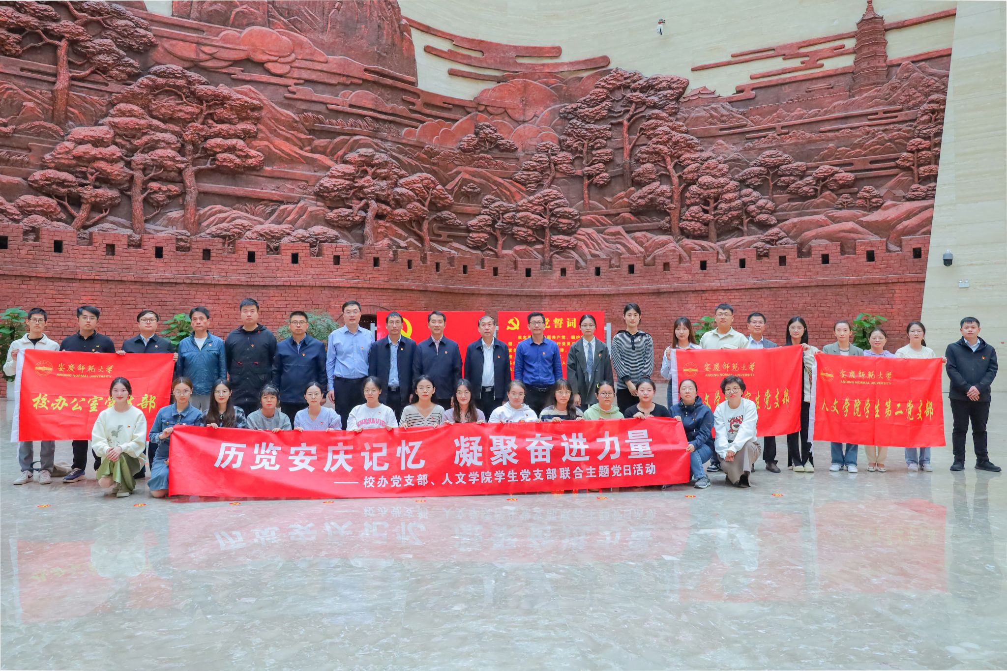 10月12日,beat365平台官方网站学生党支部携手校办公室党支部赴安庆博物馆,联合开展了“历览安庆记忆 凝聚奋进力量”主题党日活动。校党委常委、副校长刘友忠,校党委常委、办公室主任、beat365平台官方网站党委书记张红飞以普通党员身份参加,校办公室党支部(国家级样板支部)全体党员,beat365平台官方网站学生第二党支部、研究生党支部(省级样板支部)党员代表参与了活动。