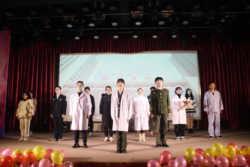 2019级汉语言文学一班艾宇龙说:“2020年是抗疫之年,在疫情期间,涌现出无数平民英雄,谱写了无数动人的篇章。为致敬这些伟大的英雄们,beat365官网话剧社自编自导,原创话剧《黎明之前》。”话剧由警察在疫情期间阻止居民外出、军人母亲自愿奔赴抗疫前线、基层医生的防疫工作逐步得到群众理解等不同片段组成。演员们饱含深情,充分投入到表演之中,将观众带入不同的故事,再现了抗疫过程中医疗战士迎难而上和坚守岗位的感人画面,赢得现场一片掌声。