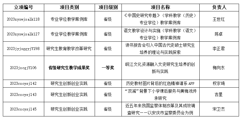 日前,安徽省教育厅公布了2023年度新时代育人质量工程项目(研究生教育)立项名单,beat365平台官方网站师生再创佳绩,共有4个类别7个项目获批立项,充分展示了学院在研究生教育领域的良好基础和深厚实力。具体情况如下: