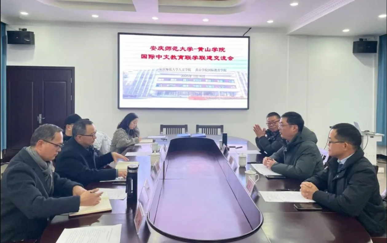 1月16日,beat365平台官方网站与黄山学院共建国际中文教育“研究生实践基地”签约暨授牌仪式在黄山学院举行。beat365平台官方网站党委书记王波、副院长沈志富,黄山学院国际教育学院院长李庆玖、副院长殷猛、黄山学院文学院院长沈昌明等出席签约授牌仪式并座谈。