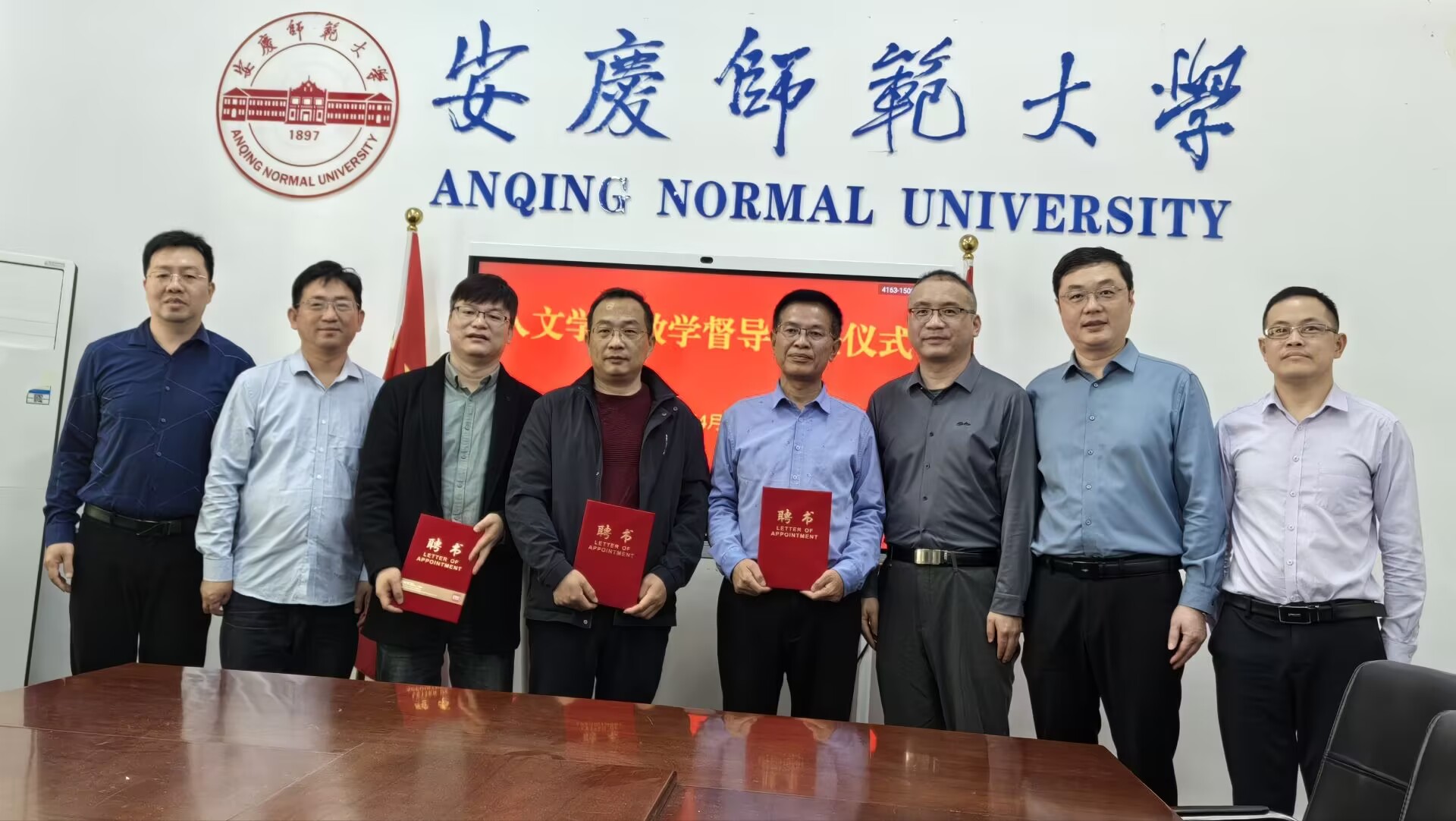 4月9日上午,beat365平台官方网站在红楼二楼会议室举行了院级教学督导员聘任仪式,汪孔丰院长、王波书记、沈志富副院长、周红兵副院长、叶当前主任参加仪式,聘任仪式由教学副院长周红兵主持,beat365平台官方网站教学办公室全体成员参加。