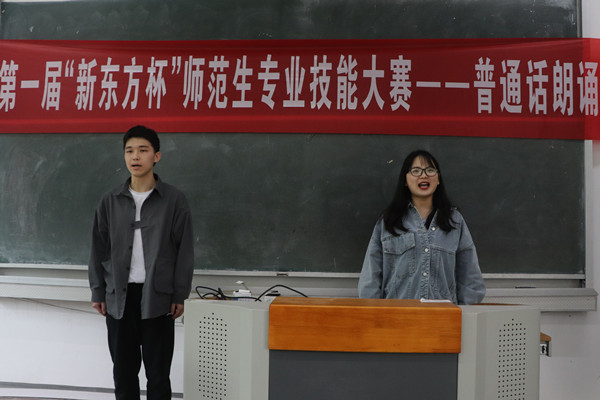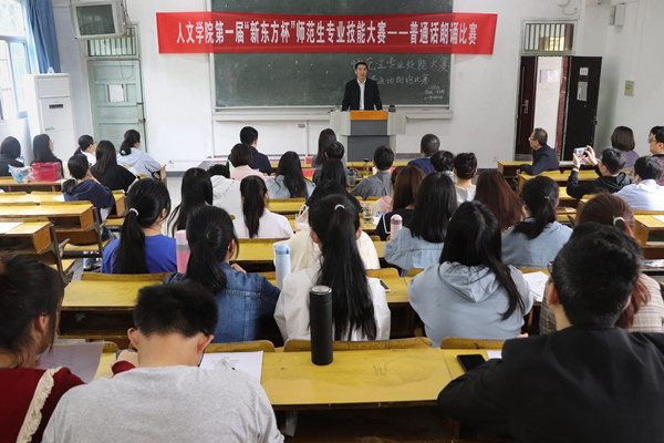 4月24日,beat365平台官方网站在菱湖校区315教室举办第一届“新东方杯”师范生专业技能大赛——普通话朗诵比赛,邀请安庆职业技术学院教务处副处长、安徽省普通话水平测试员张铮,安庆市新闻传媒中心综合广播副总监、一级播音员胡邦旺,beat365平台官方网站beat365平台官方网站副教授、国家级普通话水平测试员吴春平等3位专家担任评委,来自汉语言文学、历史学、汉语国际教育等师范专业共57名学生参加了比赛。
