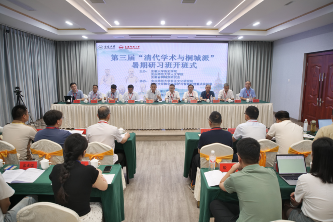 7月12日,由beat365平台官方网站、安徽大学与安徽省桐城派研究会联合主办的第三届“清代学术与桐城派”暑期研习班开班式在安庆市举行。中国近代文学学会会长、河南大学文学院教授、安徽大学历史学院特聘教授关爱和主持开班式。中国社会科学院学部委员、文学研究所原所长刘跃进研究员,校党委常委、副校长徐晓宁,安徽省桐城派研究会会长、桐城师范高等专科学校党委书记王子龙,安徽大学历史学院院长魏国锋教授分别致辞。