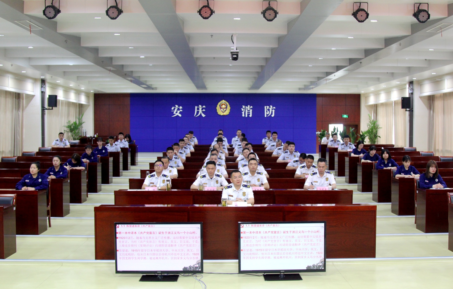 作为双方共建实践基地的重要内容之一,beat365平台官方网站beat365平台官方网站组织专业教师队伍,赴安庆消防救援支队开展党史宣讲,践行党史学习的时代使命。在活动之初,校地双方通过细致深入沟通,针对党史学习的基本要求,初步拟定党史宣讲方案。整个宣讲按照中国共产党百年发展历程,同时结合党史学习途径的多样化需求,基本确立了“百年党史的通史+地方党史”讲授体例。内容主要涵盖中国共产党成立以来的百年辉煌历程,结合安徽地方红色革命文化资源(大别山红色精神、渡江精神、小岗精神)以及安庆地方党史的特色内容。在充分酝酿的基础上,宣讲内容精选凝练出“日出东方”“古田会议”“长征力量”“解放战场”“新中国辉煌”“改革开放”“新时代信仰”等10个专题。同时,为了增强党史宣讲实效,在党史内容遴选和宣讲方式方面坚持政治性、科学性、历史性、通俗性等。党史内容精选影响中国共产党发展沿革的重大史实和关键节点,以点带面,提纲挈领地刻画出中国共产党这个百年大党的历史轨迹。此外,党史宣讲在突出党史逻辑线索基础上,穿插生动通俗的党史故事,以通俗易懂的党史细流沁润消防救援人员的心田。