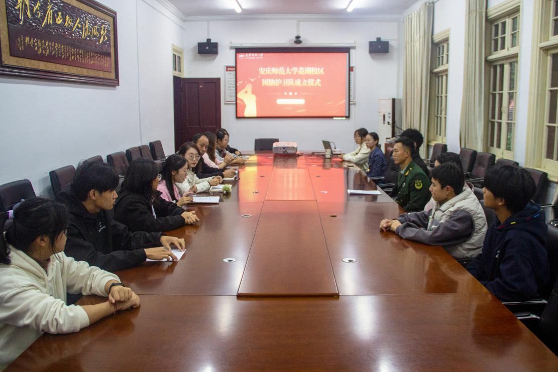 11月7日,beat365平台官方网站菱湖校区国旗护卫队成立仪式在红楼二楼会议室举行。beat365平台官方网站党委副书记、纪委书记方蓬,学生处国防教育办公室主任王友兵出席会议,菱湖校区国旗护卫队全体成员参会。