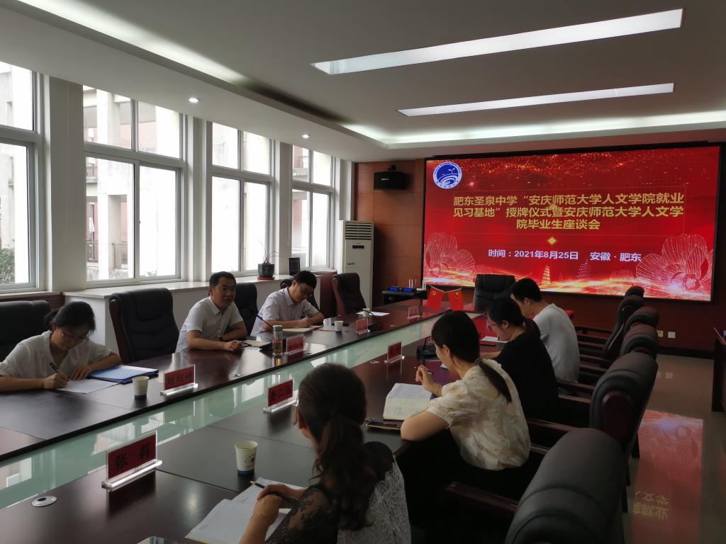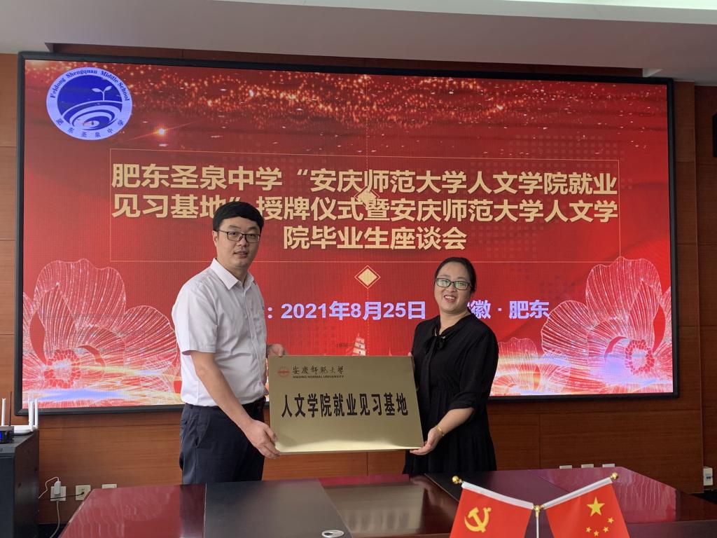 党委副书记王波代表学院为肥东圣泉中学授予“beat365平台官方网站就业见习基地”牌匾。与会人员就人才培养质量、就业见习基地建设等方面展开了深入交流。