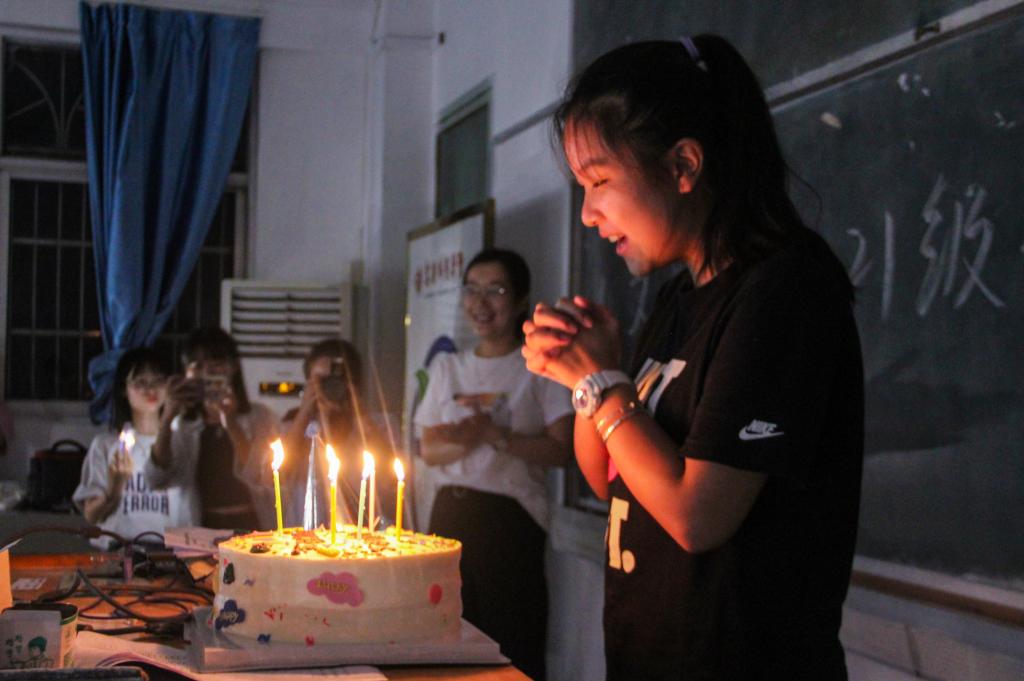 “看到学姐捧着点了蜡烛的蛋糕踏入教室的时候,我真的惊喜到了!”中国语言文学类2021(5)班的王青很是激动,“我完全没有想到学校会在开学这天给我过十八岁生日,除了父母,我还收到了来自老师、学姐和46名新同学的祝福,这让我的‘成人礼’仪式感满满!”