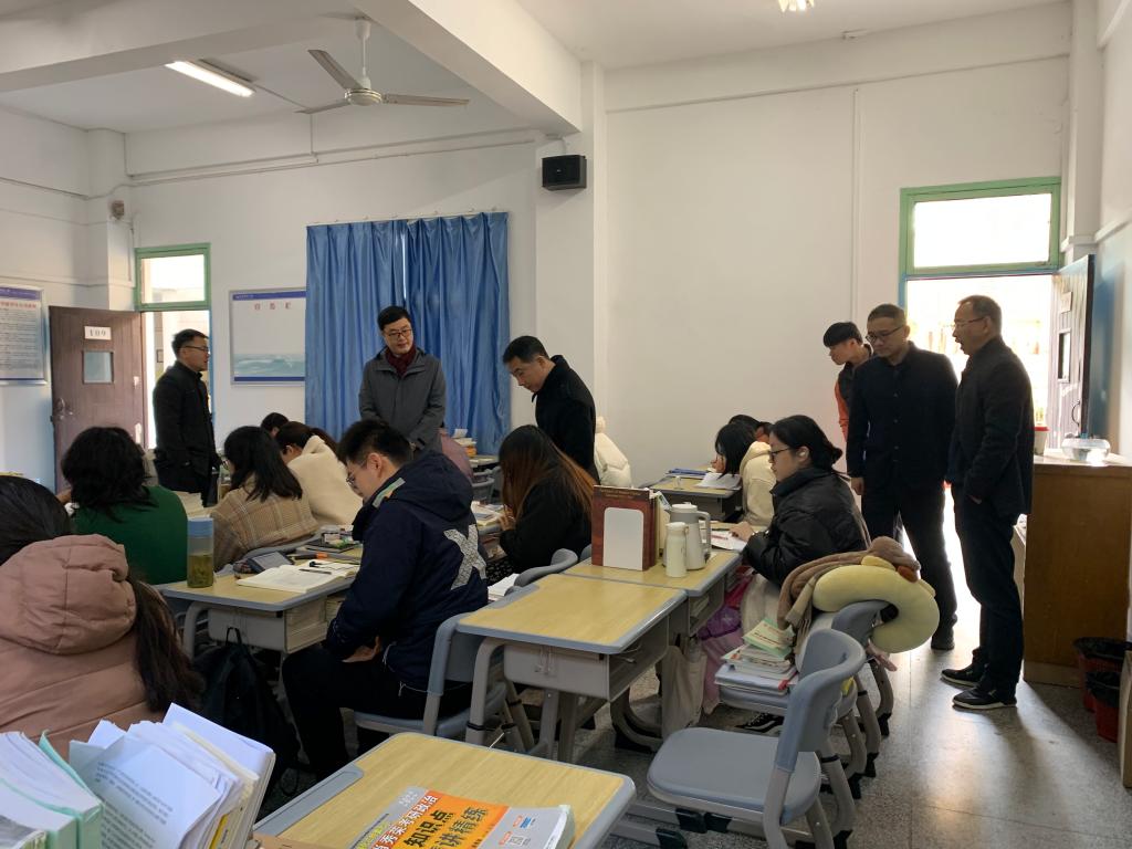 每走进一个教室,学院领导们都对考研学子的复习态度和专注度表示肯定,提醒同学们在接下来的时间要劳逸结合,注意身体,注意饮食,坚定自己的信念,保持良好的心态迎接考试。同时鼓励大家:“坚持就是胜利”。学院领导和老师们还亲切地询问了同学们在考研过程中遇到的实际困难,并现场排忧解难,做好保障工作,让同学们全身心地投入到考研中去。