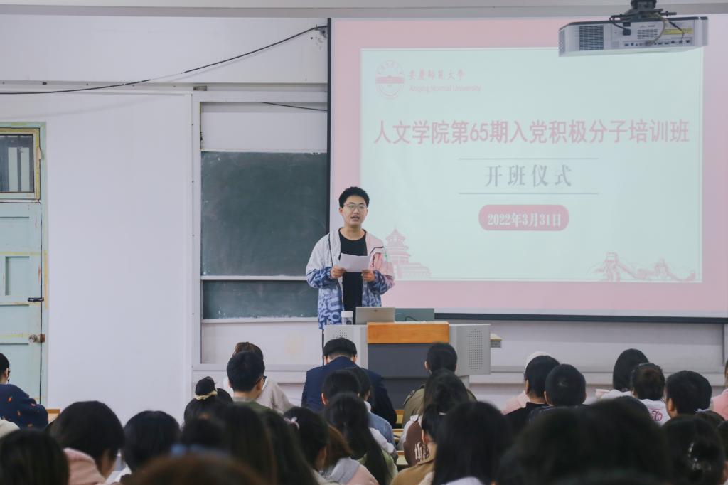 开班仪式在庄严的国际歌中拉开序幕。中国语言文学类专业2021(7)班曹忆凡代表全体学员发言,他结合近日的“两会”热点话题和大学生“村官”黄文秀、张桂梅等优秀共产党员的先进事迹,向大家展示了中国共产党开拓创新、百折不挠的奋斗精神。他表示成为一名共产党员是自己一直以来的追求和梦想,作为入党积极分子,将努力提高思想觉悟,树立良好形象,率先垂范,努力把自己锻炼成符合人民期望的合格的社会主义建设者和接班人,以优异成绩向党和人民汇报。