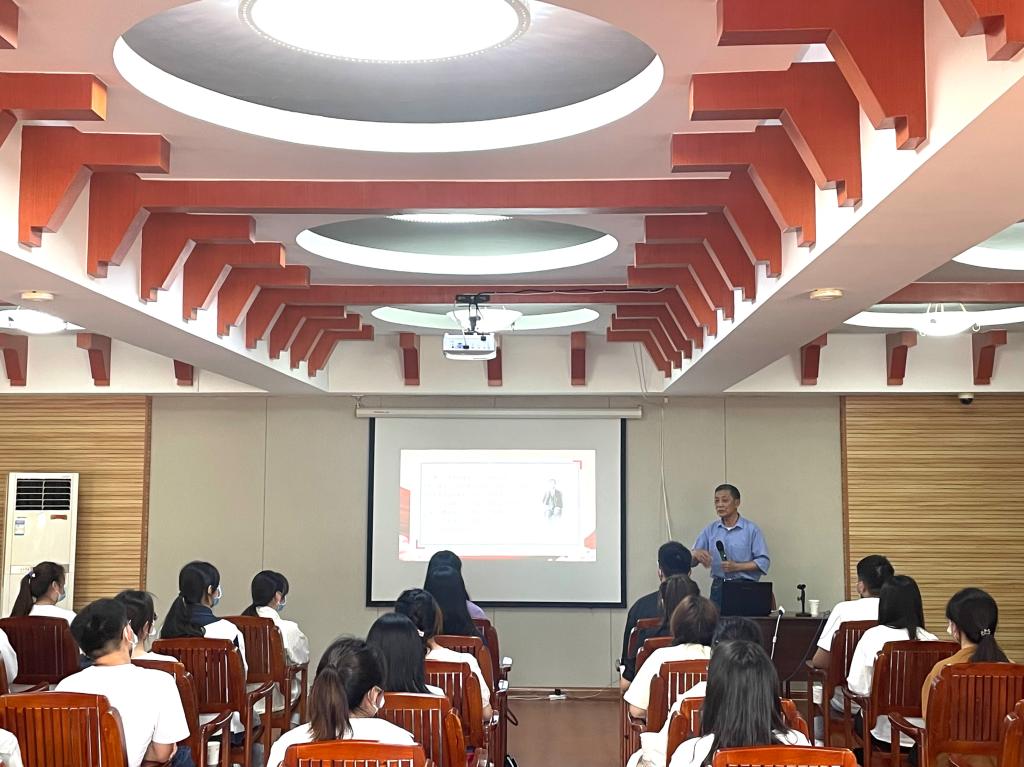 安庆市原市委讲师团团长、关工委常务副主任孙汉友首先为同学们作红色故事主题宣讲。他以中国共产党的发展史为脉络,以中国青年的奋斗历程为指引,为青年应当如何从历史中汲取奋进力量明确了目标。孙汉友强调,宣讲团要真正走到青年中去,让当代青年们在了解近代中国的发展史、新中国建设史、改革开放的奋斗史以及新时代为中华民族建设社会主义现代化强国的发展史的过程中,培养正确的价值观,激发爱国热情。