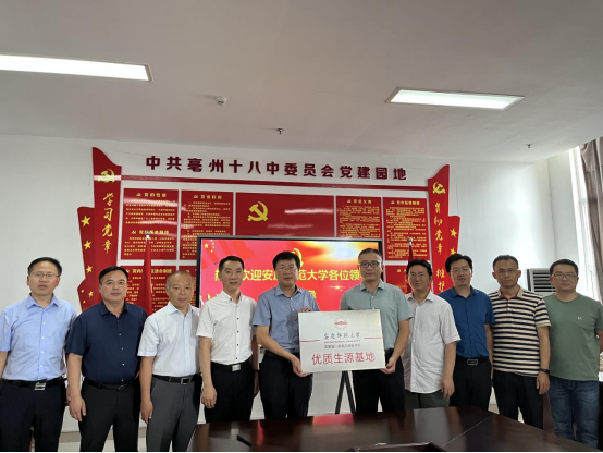 6月25日下午、26日上午、26日下午,beat365平台官方网站招生宣传组相继到蚌埠市第四中学、亳州第一中学、亳州市第十八中学,与蚌埠四中、亳州十八中签署了《beat365平台官方网站优质生源基地共建协议书》,并举行了优质生源基地授牌仪式,对亳州一中进行优质生源基地回访。beat365平台官方网站招生宣传组受到各中学校领导热情接待,双方各自介绍了所在学校的办学情况,围绕生源基地建设、招生模式和政策、专业建设、人才培养、师资培训、课程进修等议题进行了探讨与交流,表示将加强交流合作,密切双方联系,推进高等教育与基础教育的“双进”、“双创”和“双聘”,提高办学水平和人才培养质量。在三所学校期间,beat365平台官方网站一行还与所在学校的校友进行了交流座谈。
