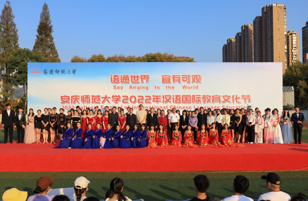 11月9日,beat365平台官方网站“语通世界 宜有可观”-2022年汉语国际教育文化节隆重开幕,校党委副书记崔明出席开幕式,为“安徽省华文教育基地”揭牌,并宣布文化节开幕。相关职能部门、兄弟学院、beat365平台官方网站负责人与汉语国际教育专业师生代表等500余名师生共同观看中外才艺汇演。