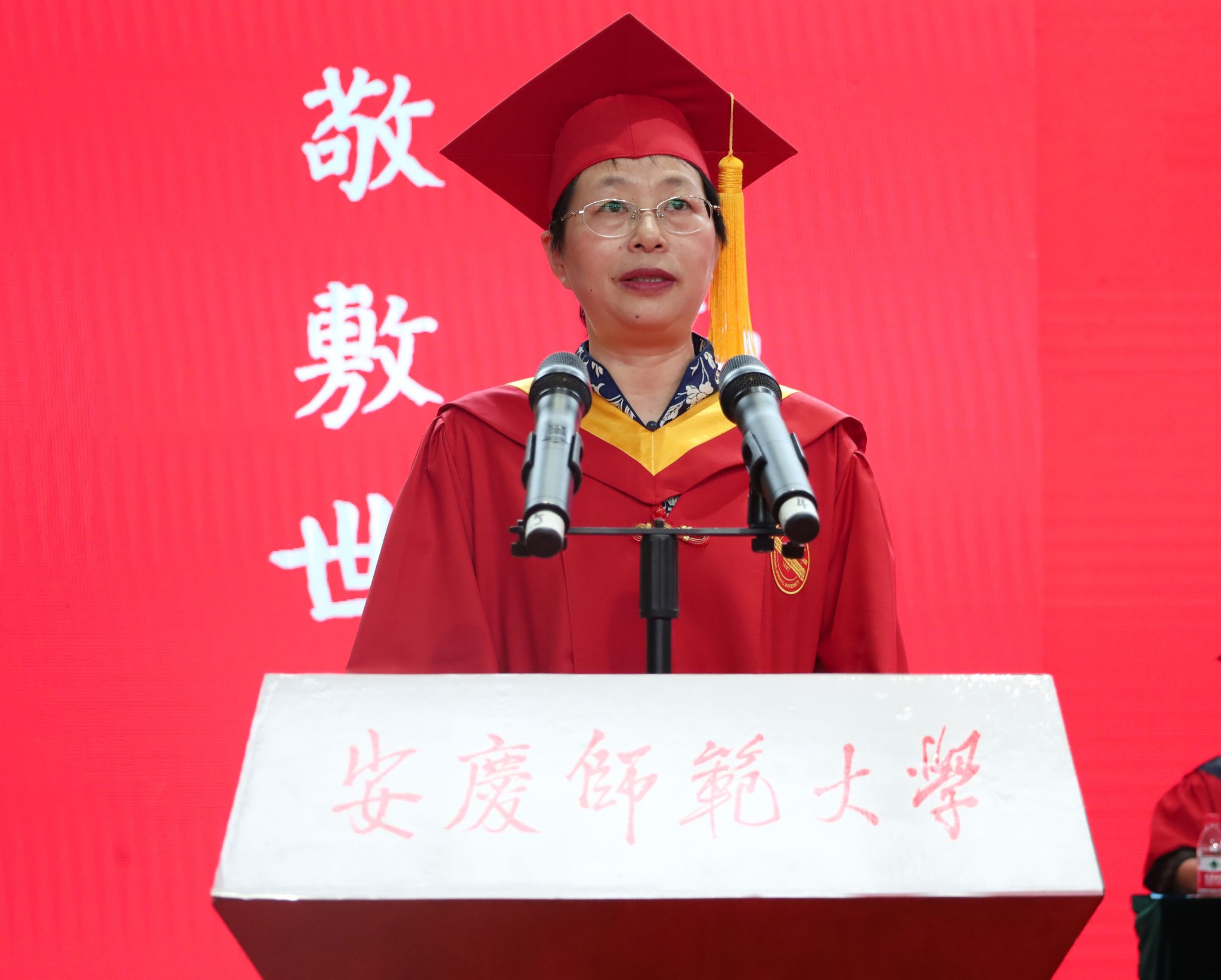 彭凤莲校长发表了《人生路遥贵有恒 投身家国须笃行》毕业致辞。她首先向2023届全体毕业生顺利完成学业、即将走向工作岗位表示热烈祝贺,向所有为毕业生的成长付出辛勤汗水的老师、亲友和社会各界致以衷心的感谢。彭校长深情地回顾了2023届毕业生与国家、社会、学校同频共振、共同成长的历程。在致辞中,彭校长借助三位优秀校友的成长经历向毕业生提出三点期望。一是坚持理想,照亮前进方向。只有趁着年轻、拼尽全力去争取的,才会化为生命中不可或缺的部分。二是坚持努力,汇聚成长力量。随着高等教育的普及,大学生更应该不断努力奋进,为自己美好的未来拼搏奋斗。三是坚持梦想,绽放人生光芒。一个实现梦想的人,就是成功的人,坚持最初的梦想,就是最伟大的财富。