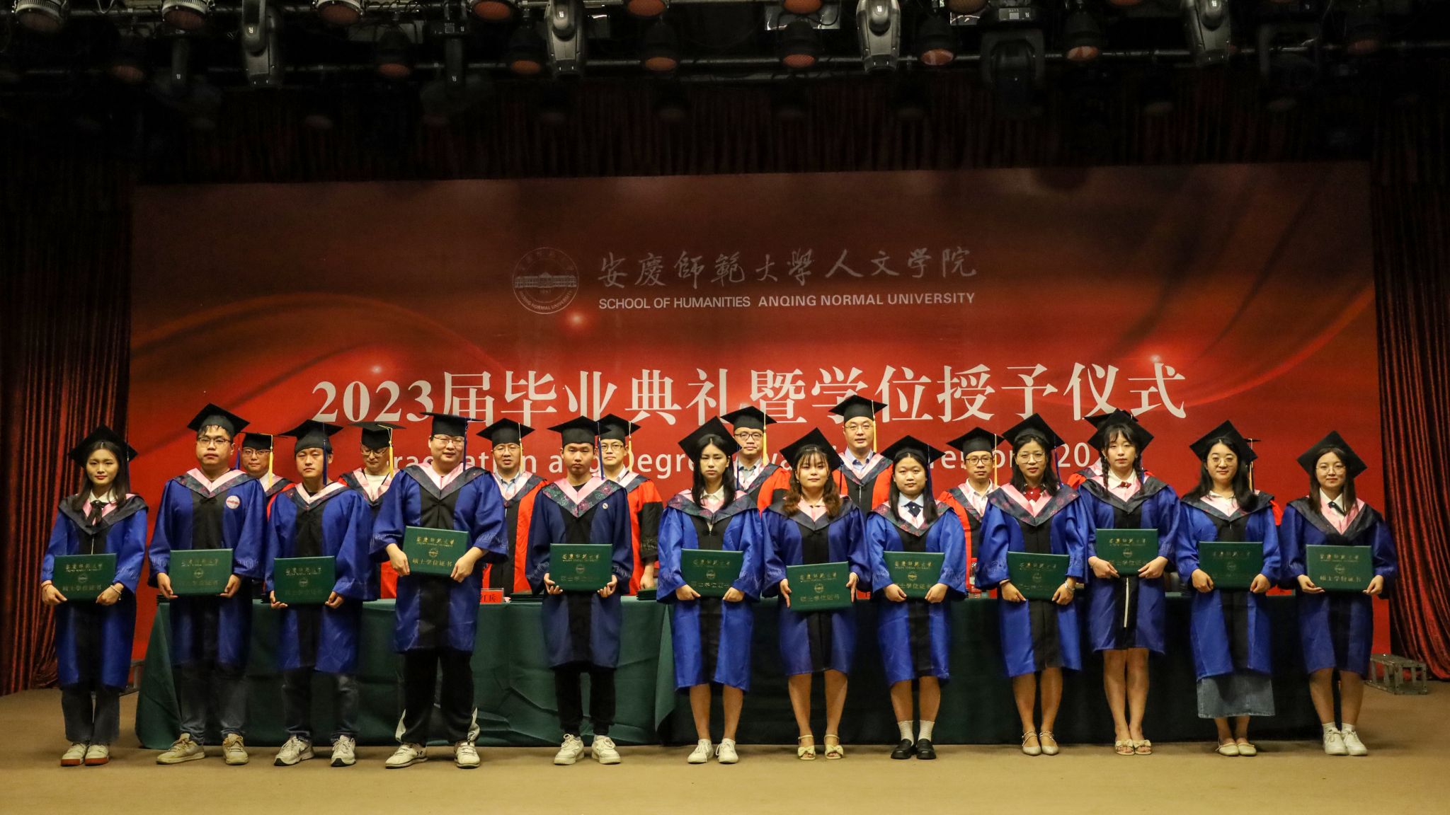 学位授予仪式上,2023届全体毕业生身着学士服,以此走上主席台,学院领导为其一一正冠拨穗,并授予学位证书,合影留念。