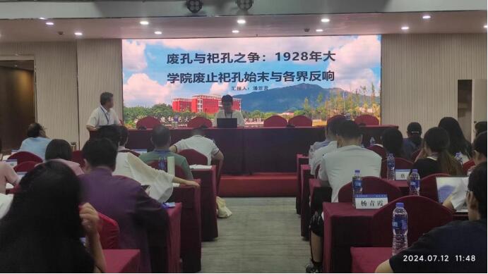 大会共分为两个阶段,第一阶段由安徽师范大学丁修真教授作《决科之利:科举时代的选举与应对》主旨报告。主旨报告结束后,由省内各高校历史学专业的6名学生代表作大会报告。潘昱贤同学作为我校学生代表作主题汇报,与同学们共同展开了一场学术研讨。第二阶段在各专场进行论文汇报、学术交流和评议,参会同学通过个人讲述以及PPT展示的方式分享学术成果。评议老师从选题意义、研究视角和论文结构等诸多方面进行点评,并与同学们展开交流。