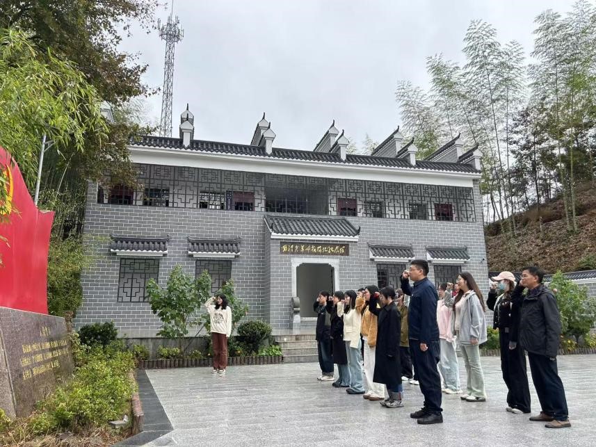 在北浴乡罗汉尖革命根据地纪念馆,“安庆好人”朱留安老师为支部党员上了一堂生动的党课,介绍了从抗战时期建立罗汉尖革命根据地到如今一路走来的发展历程,使青年党(团)员深刻体会到罗汉尖人民始终跟随中国共产党的脚步,坚定革命立场。随后成员们参观了纪念馆,仔细查看罗汉尖革命史料,红色教育引领支部党员学习革命先烈清正廉洁、艰苦奋斗、不怕牺牲的革命精神,赓续精神血脉,汲取奋进力量。参观结束后,全体党员在纪念馆广场前一同重温了入党誓词。