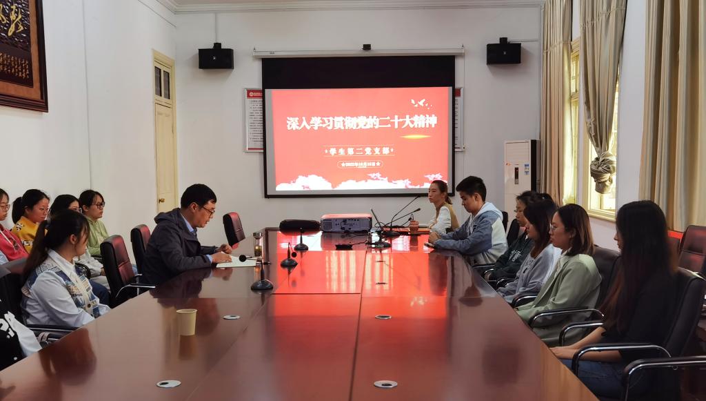支部书记唐宫羽表示,党的二十大报告进一步指明了全面建设社会主义现代化国家、全面推进中华民族伟大复兴的前进方向。从2012到2022,从党的十八大到党的二十大,从一名青年学生到一名高校辅导员,我亲眼见证了党带领人民创造了彪炳史册的人间奇迹,亲身参与着实现中华民族伟大复兴的伟大事业。我深信党用伟大奋斗创造了百年伟业,也一定能用新的伟大奋斗创造新的伟业。作为一名做青年工作的高校思政工作者,我将深入大学生中去,坚持用党的科学理论武装青年,用党的初心使命感召青年,做青年朋友的知心人、青年工作的热心人、青年群众的引路人,和万千青年一起,为全面建设社会主义现代化国家、全面推进中华民族伟大复兴而团结奋斗!