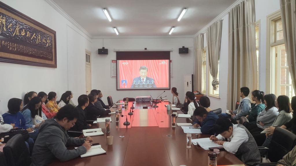 同心向党盼盛会,奋楫扬帆启新程。10月16日上午10时,中国共产党第二十次全国代表大会在人民大会堂隆重举行。中共中央总书记、国家主席、中央军委主席习近平出席大会并代表十九届中央委员会向大会作报告。beat365平台官方网站学生第二党支部组织全体党员在红楼会议室集中观看开幕会盛况,认真聆听习近平总书记所作的报告,并展开热烈讨论。大家纷纷表示,党的二十大是我们党带领全国各族人民开启全面建设社会主义现代化国家、全面推进中华民族伟大复兴新征程的关键时期召开的一次十分重要的大会,习近平总书记在大会上的报告全面总结回顾了过去五年以及新时代十年的伟大变革,提出了未来五年乃至更长时期党和国家事业发展的目标任务和大政方针,令人振奋、催人奋进。全体党员明确要把深入学习宣传贯彻党的二十大精神作为当前首要政治任务,自觉把思想和行动统一到大会精神上来,昂扬奋发、锐意进取,以更加昂扬的姿态迈向新征程建功新时代。