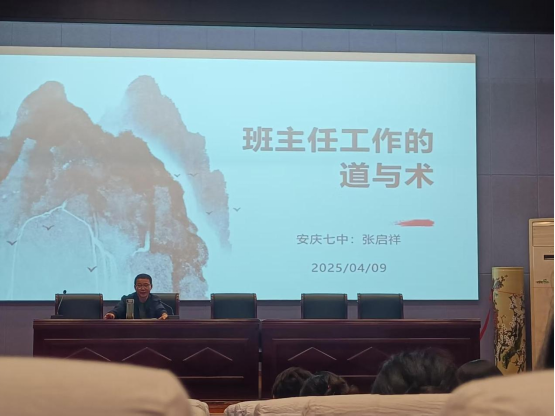 安庆七中张启祥老师为beat365平台官方网站师生做了题为“班主任工作的道与术”的专题讲座。张启祥老师以“教育的本质是唤醒灵魂”开篇,结合自身多年来年班主任工作经历,阐述了班主任角色的“道”——即教育者的使命与价值观。他强调,班主任不仅是知识的传递者,更是学生成长的引路人。“‘道’是教育的根,是教师对学生的爱与责任。只有心怀教育理想,才能在琐碎的工作中保持定力,用耐心和智慧点亮学生的未来。”张老师通过讲述自己陪伴特殊学生成长的案例,展现了教育工作者“不放弃每一个孩子”的信念,令在场师生深受触动。